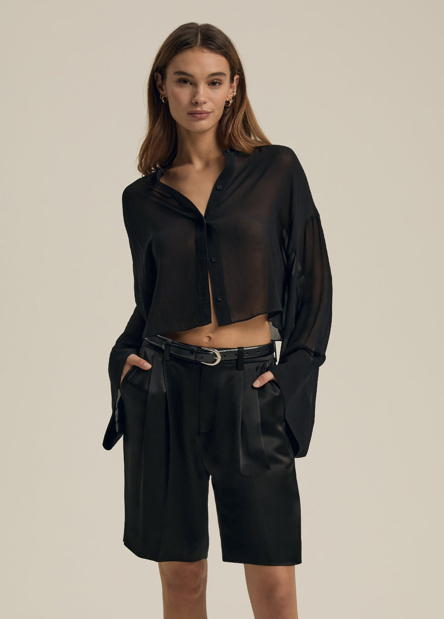 The Belle Of The Ball Top features 100% viscose bell sleeves with button detailing and a mock neck. Elevate your wardrobe with this elegant and versatile piece that adds a touch of sophistication to any outfit. Perfect for making a statement and standing out in a crowd.