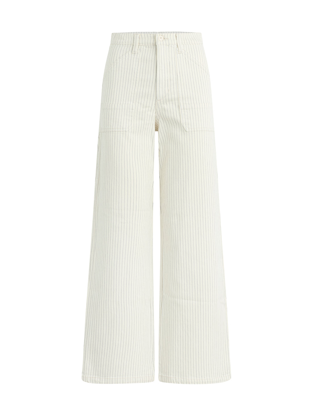 Experience ultimate comfort and style with our Favorite Daughter Mischa Utility Pant. These woven pants feature a wide leg design and narrow pinstriping for a sleek and stylish look. Perfect for any occasion, these pants will elevate your wardrobe and provide all-day comfort.