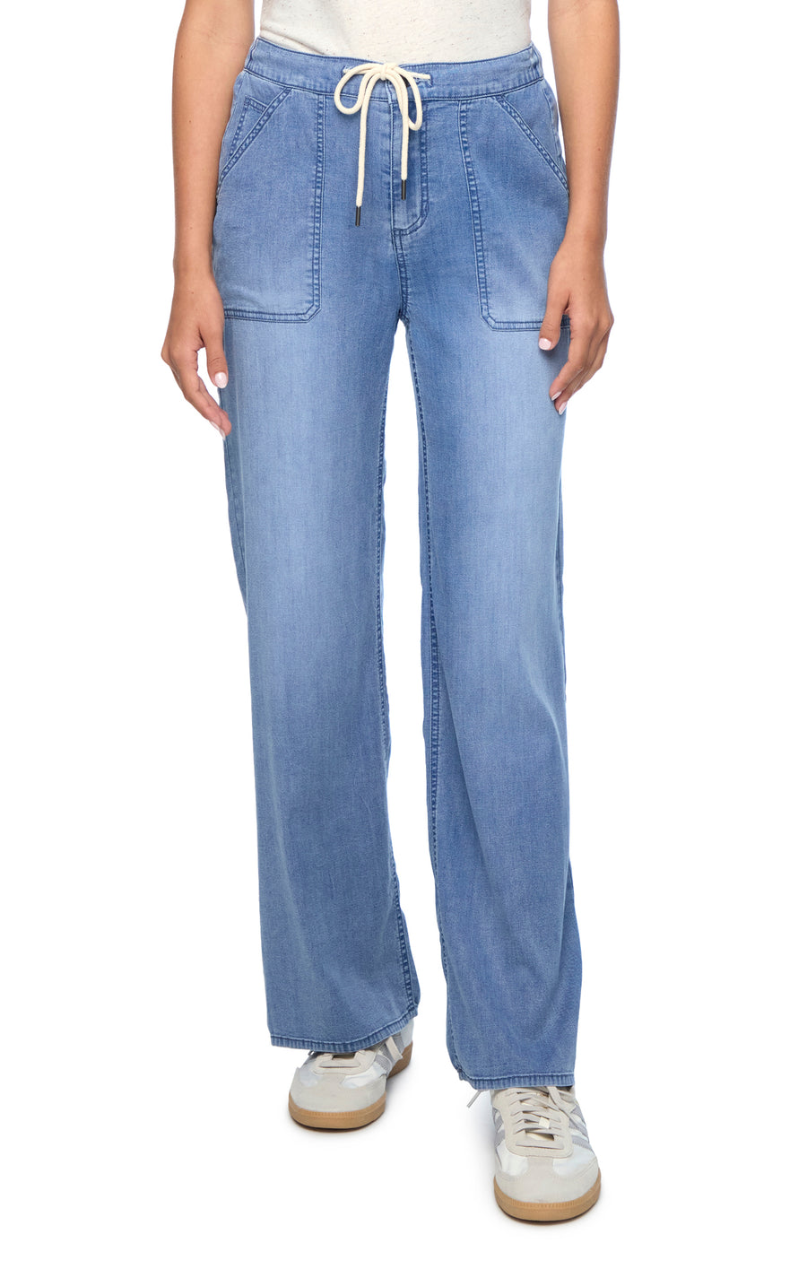 Elevate your style with the Flag & Anthem Bluffton Wide Leg Jean. Featuring a unique drawstring design, these jeans offer a comfortable, relaxed fit that keeps you looking effortlessly cool. Perfect for any occasion, these jeans will take your wardrobe to the next level.