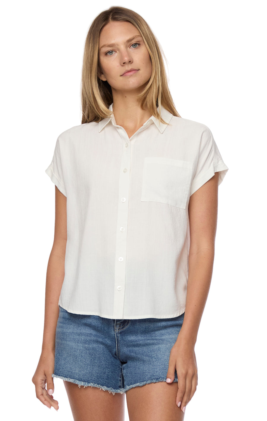 Upgrade your wardrobe with the Flag & Anthem Frannie Dolman Top. This woven button up collar shirt features dolman sleeves for a unique and stylish look. Effortlessly elevate any outfit with this versatile and comfortable top. Perfect for both work and casual occasions.