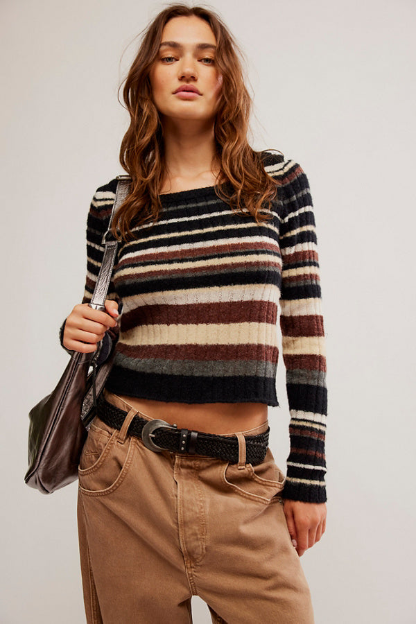 Cozy up in the Lumen Stripe Pullover, a chic addition to your casual wardrobe. With its soft knit and trendy stripes, this pullover offers both comfort and style. Pair it with your favorite jeans or leggings for a laid-back yet fashionable look.