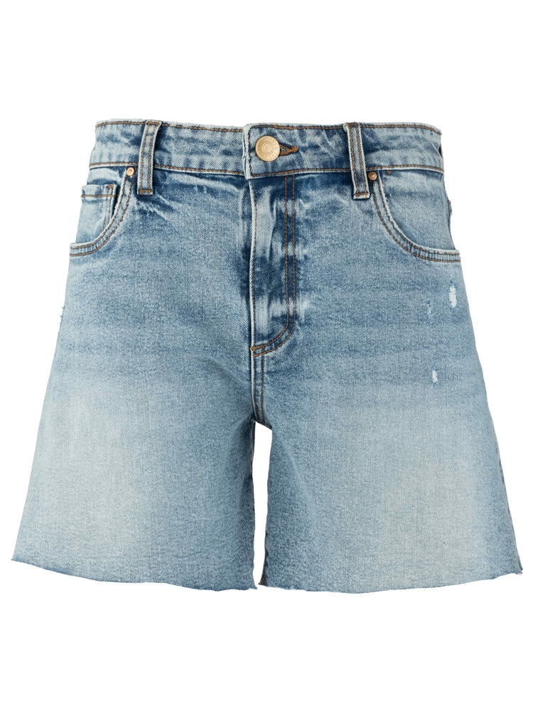 Elevate your summer style with Kut Hailey High Rise Cutoff Shorts. These trendy shorts feature a 6" inseam and a 10 1/2" rise for a flattering fit. Made with 99% cotton and 1% spandex, they offer both comfort and stretch. Pair with any top for a fun, laid-back look.