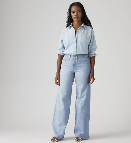 Transform your wardrobe with the Levis 318 Shaping Wide Leg Jean. Crafted with signature shaping technology, it sculpts and contours your curves for a flattering fit. The wide leg design adds a touch of effortless style to any look. Elevate your denim game and feel confident in every step!