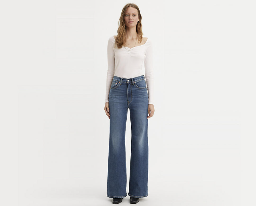 Experience the iconic style of New York with Levis Ribcage Bells A New York Moment Jean. These high-waisted jeans not only add a touch of glamour to any outfit, but also provide a flattering fit that accentuates your curves. Elevate your fashion game and unleash your inner city chic with these must-have jeans.
