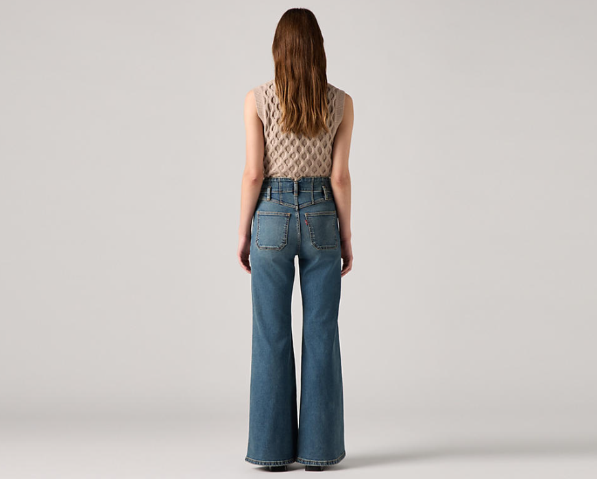 Elevate your denim game with Levis Ribcage Bells Corset Dart Game Jean. The high-rise fit elongates the legs while the corset dart detail cinches in the waist for a flattering silhouette. Perfect for a day of play or a night out!