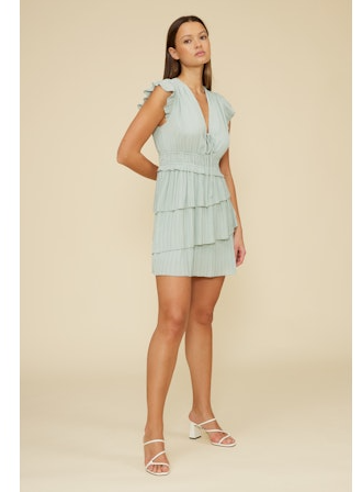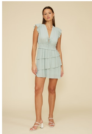 Experience effortless style in the Lucy Paris Alice Asymmetrical Dress. The ruffled cap sleeves add a touch of femininity, while the tie detailing and cinch waist create a flattering silhouette. Complete with a tiered asymmetrical skirt, this dress is perfect for any occasion.
