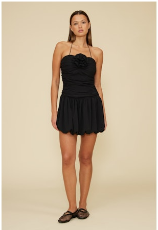 The Lucy Paris Faye Mini Dress is a must-have for any fashion-forward individual! With its halter neck tie and bubble skirt adorned with a beautiful flower embellishment, this dress is the perfect combination of elegance and playfulness. Transform your wardrobe and make a statement with this stunning piece.