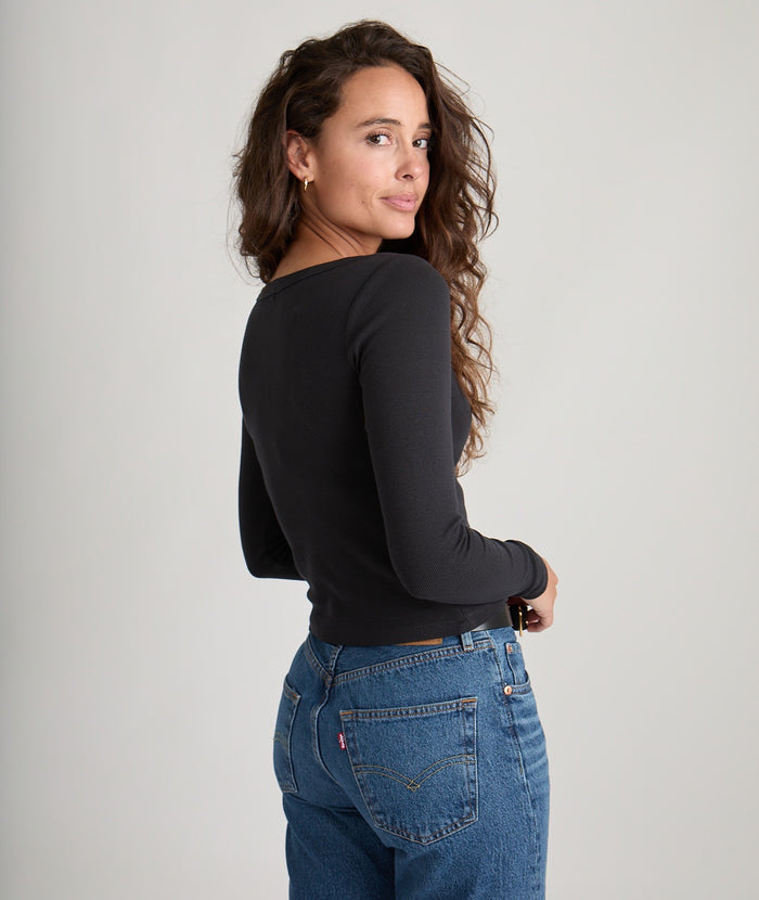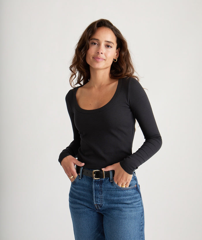 This Marine Layer Lexi Rib Sun-In Scoop Tee is a must-have for any wardrobe. Made with soft ribbed fabric and a relaxed fit, it offers both comfort and style. The sun-in scoop neck adds a touch of uniqueness while the versatile color options make it perfect for any occasion.