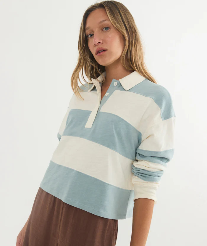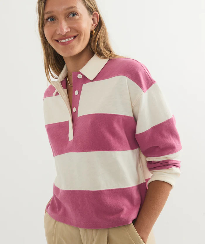 Score a fashion victory with our Marine Layer Rugby Crop Polo! This playful take on the classic polo features a cropped design, giving you a sporty and chic look. Perfect for casual days out or a day on the court. (Polo pun intended!)