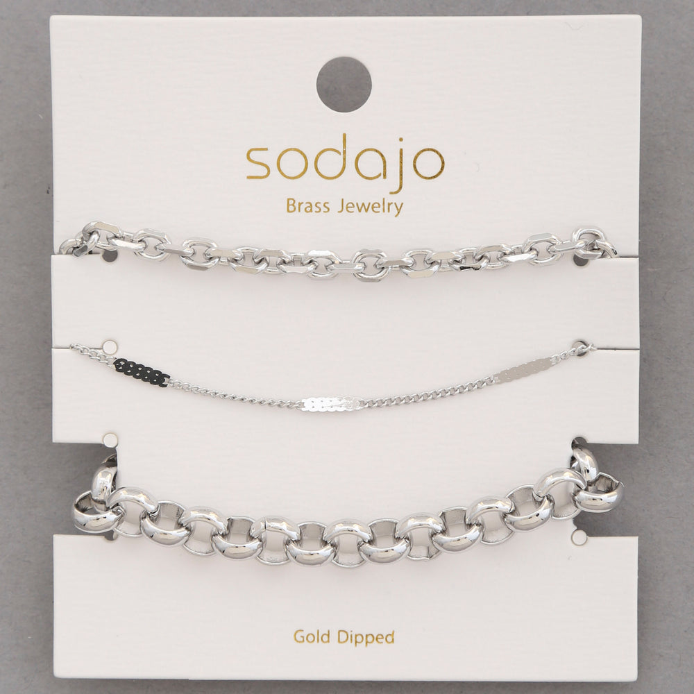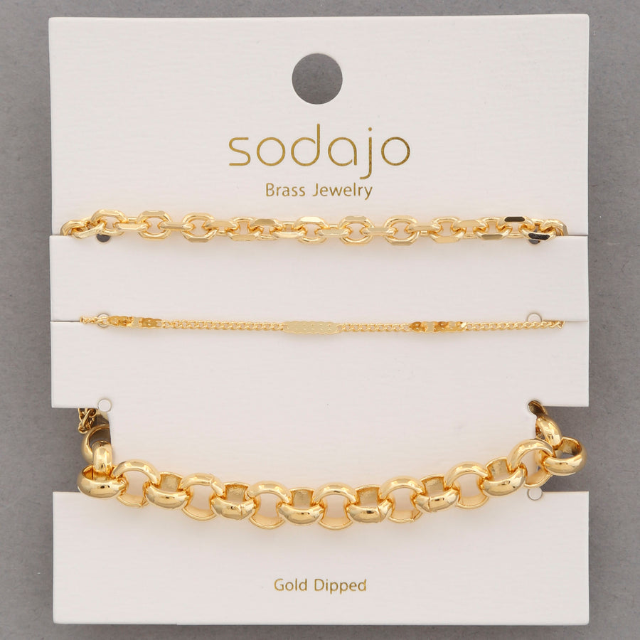 Adorn your wrist with the Sodajo Circle Link Metal Gold Dipped Assorted Bracelet Set. These bracelets feature a playful mix of circle links, crafted in a stunning gold dipped metal. Add a touch of charm and sophistication to any outfit with this quirky and fun accessory.