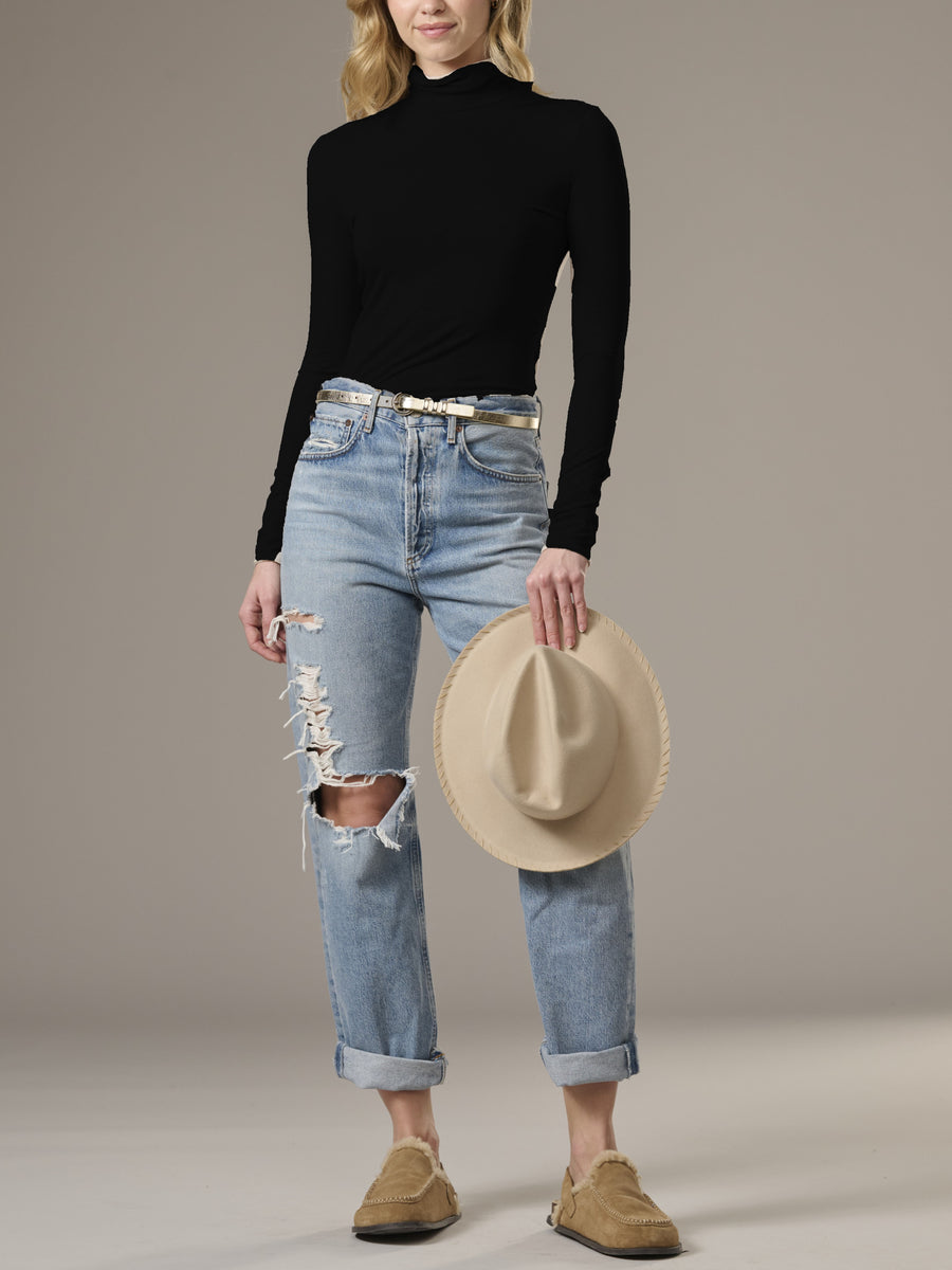 Stay cozy and chic with the Splendid Bamboo Turtleneck Long Sleeve. This eco-friendly piece combines style and sustainability, featuring a soft bamboo blend that feels amazing against your skin. Its classic turtleneck design and fitted silhouette make it perfect for layering or wearing solo, ensuring you stay warm and fashionable all day long.