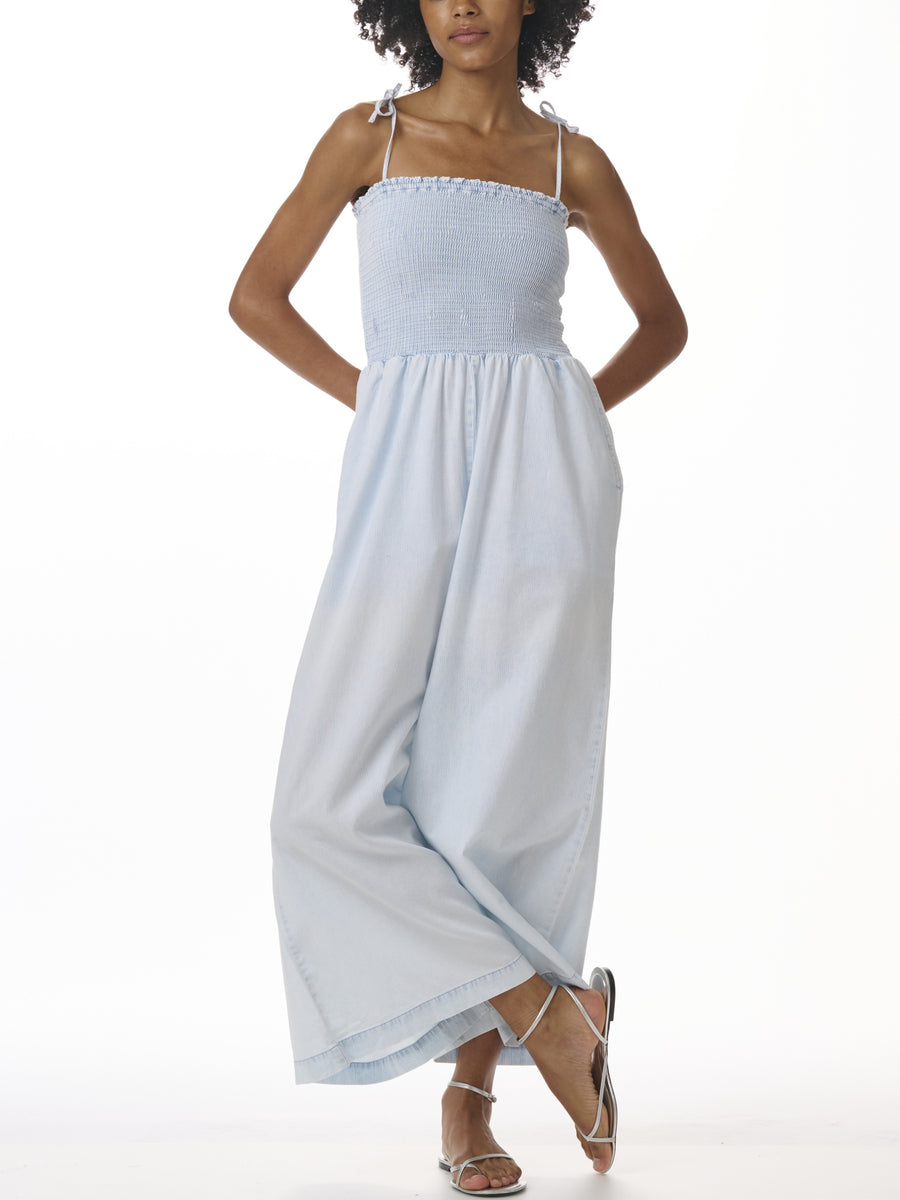 Dance the night away in our Splendid Indigo Stripe Jumpsuit! The tie shoulder straps add a fun twist to this wide leg jumpsuit, perfect for any occasion. Made with a blend of 83% cotton and 17% lyocell for ultimate comfort and style.