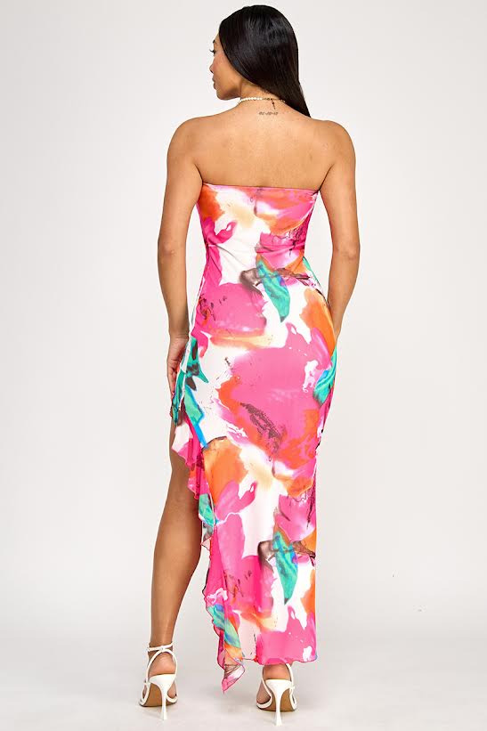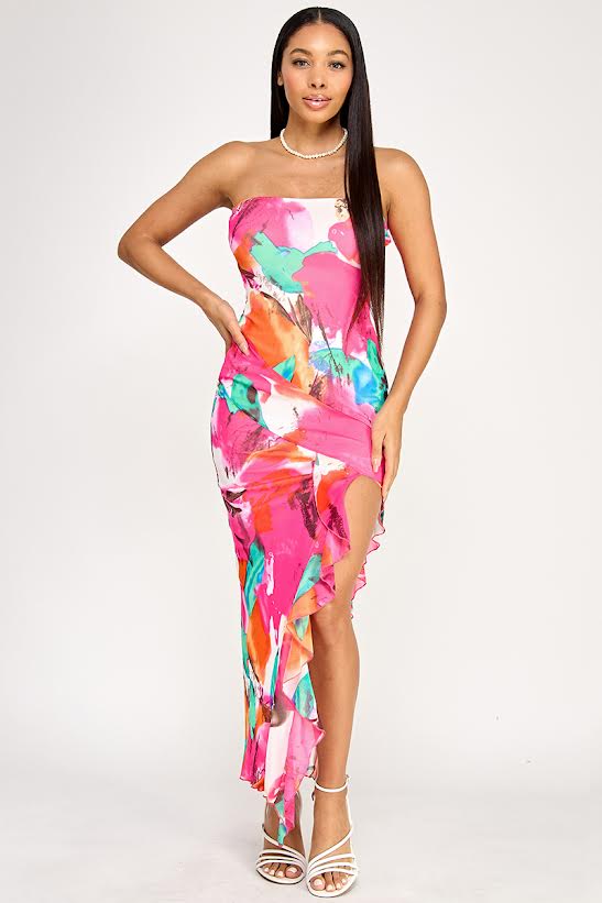 Flaunt your fun side with the Spring Haze Floral Maxi Dress. Featuring a playful slit and flirty ruffles, this dress is perfect for any occasion. Embrace your carefree spirit and stand out in this unique and trendy dress.