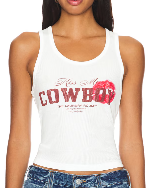 Elevate your casual wardrobe with The Laundry Room Kiss Me Cowboy Rib Tank. This eye-catching tank combines playful western charm with comfortable ribbed fabric that flatters your figure. Perfect for summer outings or layering year-round, its versatile design transitions effortlessly from day to night. Make a statement that's both fun and fashionable with this must-have piece.