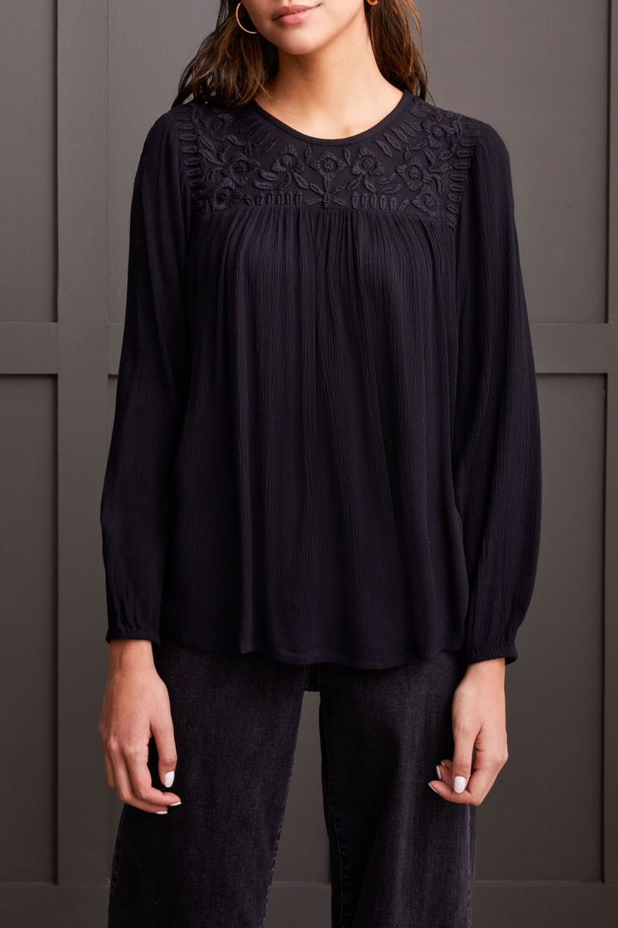 Unleash your wild side with this Tribal LS Blouse featuring an intricately embroidered yoke. Perfect for a playful day out or a quirky night in, this blouse adds a touch of fun to any outfit. Embrace your individuality with this unique piece.