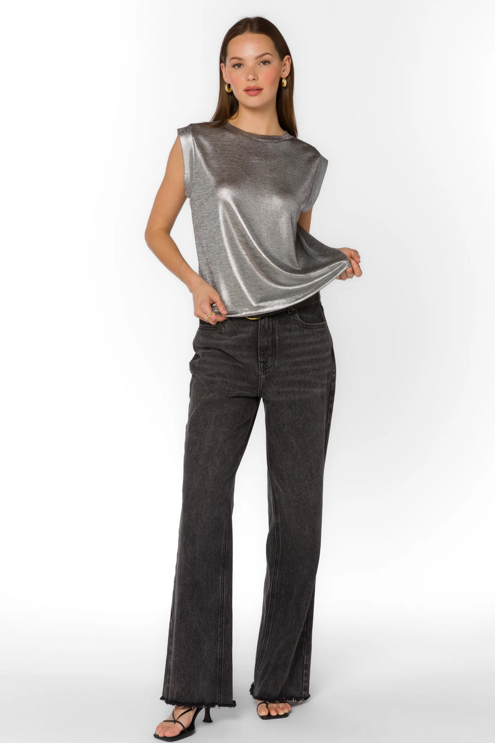 Unleash your style and strength with the Velvet Heart Rossin Top. This metallic muscle tee offers a bold and edgy look, while its loose fit maximizes comfort and movement. Elevate your performance and shine with every step.