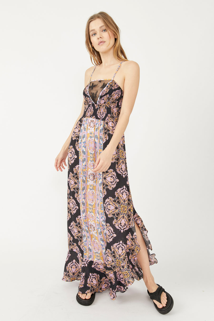 Experience effortless elegance in the Free People That Moment Maxi Dress. Featuring a flowing silhouette and delicate lace details, this dress exudes grace and sophistication. Perfect for any special occasion, it will make you feel confident and beautiful. Embrace your inner goddess with this stunning dress.