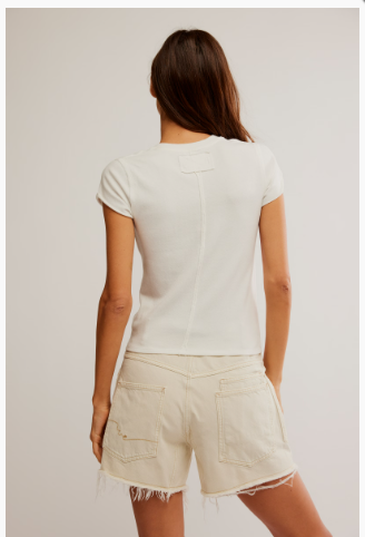Stay comfortable and stylish with the Free People The Tee That Got Away. This knit t-shirt is made with 94% cotton and 6% elastane, ensuring a soft and stretchy fit. The short sleeve design and V-neck add a touch of casual style to any outfit. Perfect for everyday wear, this tee will quickly become your go-to choice.