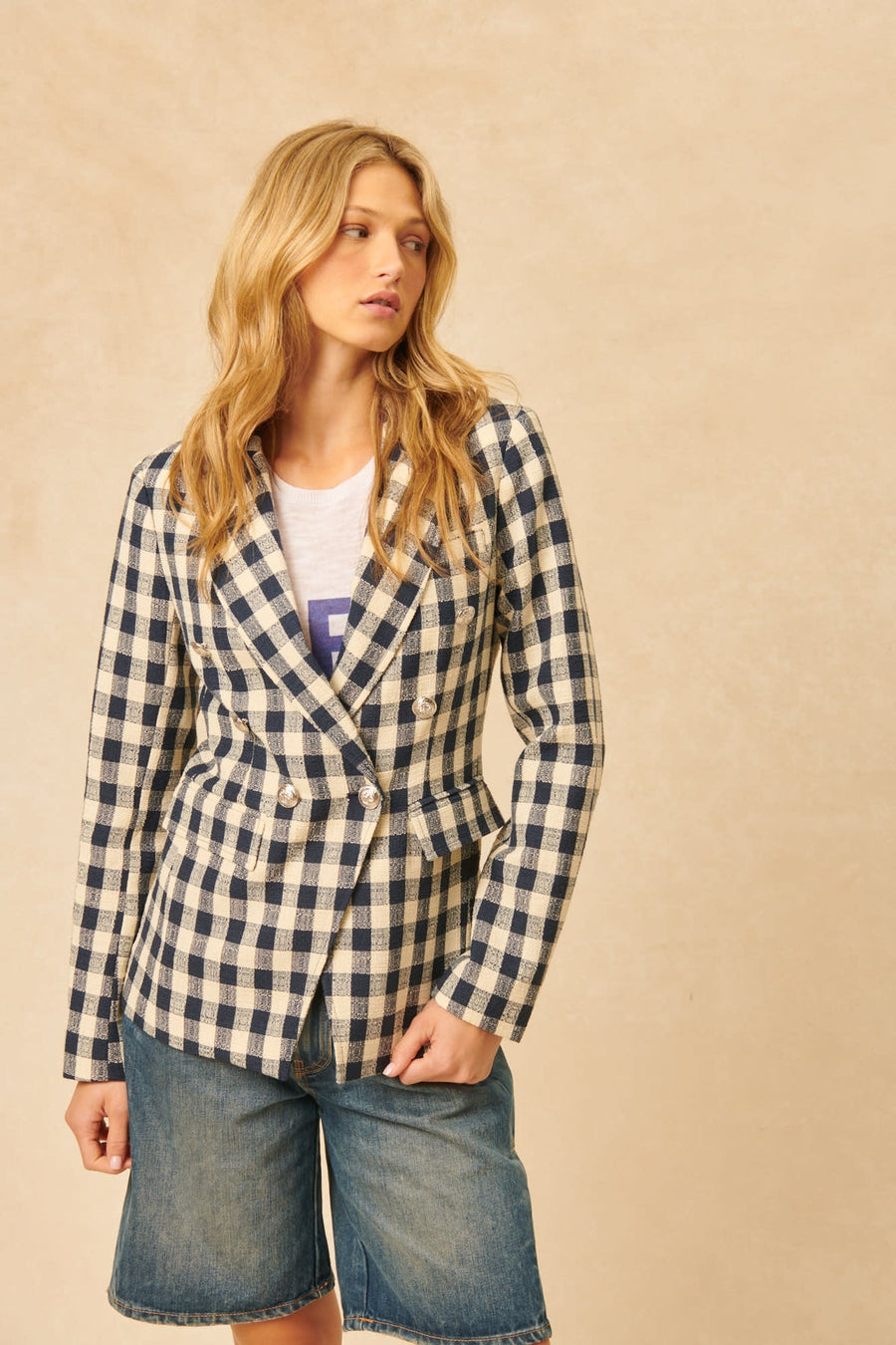 Score a style strike with the John & Jenn Oliver Blazer. This blazer boasts a playful gingham pattern, injecting some fun into any outfit. Whether you're strutting to the office or a night out, this quirky blazer has got you covered (literally)!