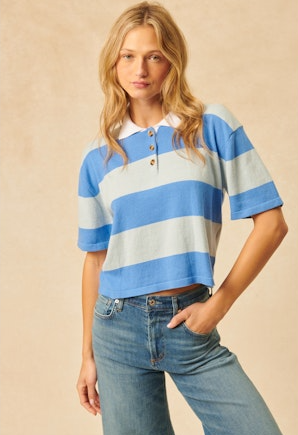 Add some personality to your wardrobe with the John & Jenn Tarik Polo! This cropped and boxy polo features playful stripes, perfect for making a statement. Time to step up your polo game, pun intended. (No more boring, traditional polos here!)