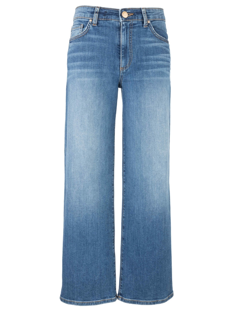 Elevate your denim game with Kut Charlotte High Rise Wide Leg Regular Hem Jean. Crafted from low stretch denim, these jeans feature a stylish high waist and wide legs in a stunning Healthy blue. Designed for both fashion and comfort, these jeans are a must-have addition to your wardrobe.