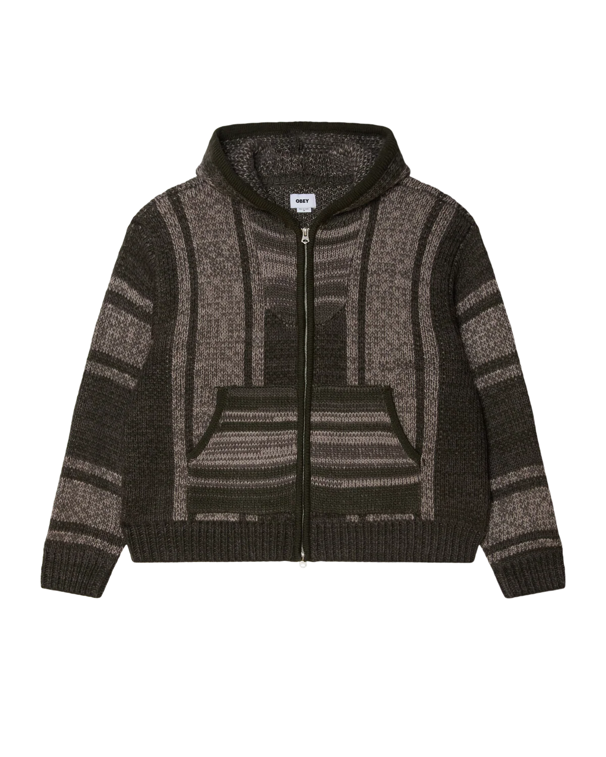 Layer up with the Obey Zip Up Baja Sweater, a cozy essential that brings effortless style to your everyday rotation. Crafted from a warm acrylic and wool blend, this hoodie features a sleek metal zip front for easy on-and-off versatility. Two spacious patch pockets keep your hands warm or your essentials close, while ribbed cuffs and hem lock in the fit. The iconic logo embroidery adds that signature Obey touch. Regular fit makes it perfect for pairing with your favorite tees or layering under jackets when the temperature drops.