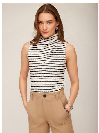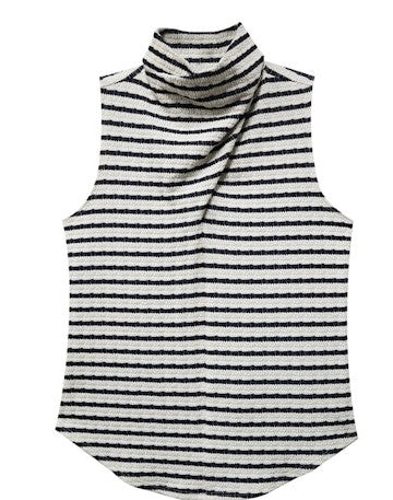 The Fifteen Twenty Abbey Turtleneck Tank adds a fun twist to a classic look with its puckered stripe knit that brings subtle texture to your outfit. Its sleeveless design and softly crossed turtleneck create a chic, sculptural vibe perfect for turning heads from morning meetings to evening outings. Playful yet polished, this tank is your new go-to for effortless style all day long.