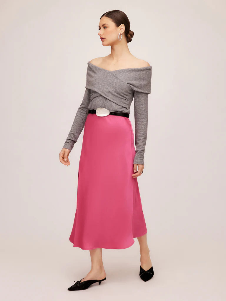 Introducing the Fifteen Twenty Lana Drape Crossover Top, crafted with an alluring off-the-shoulder drape design and shimmering jersey fabric. Elevate your evening or special occasion look with this sophisticated and luxurious piece.