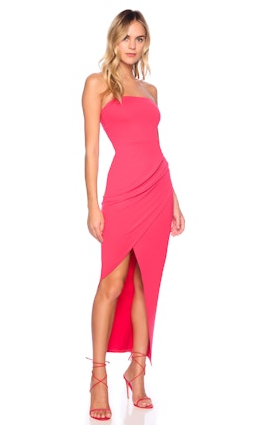 Elevate your style with the Susana Monaco Carryover Tube Overlay Dress! This strapless dress features flattering crossover draping, perfect for any occasion. Show off your curves in this must-have dress.