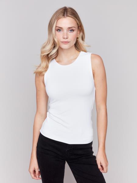 Elevate your wardrobe with our Charlie B Super Stretch Sleeveless Top! Made from a luxurious double cloth knit, this top offers ultimate comfort and style with its super stretch material. Perfect for any occasion, it will flatter your figure and keep you feeling confident all day long.