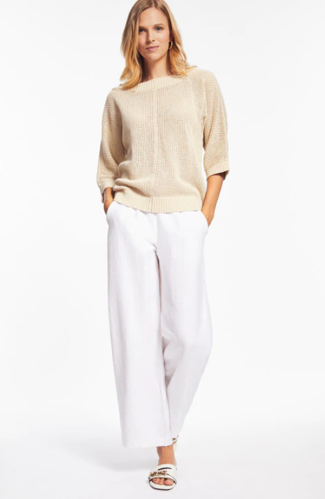 "The Ecru Ravello Pull On Cropped Pant offers effortless style and comfort. Made from high-quality fabric, these pants are perfect for any occasion. With a pull-on design and cropped length, they provide a flattering fit while ensuring ease of wear. Add a touch of sophistication to your wardrobe with these versatile pants."