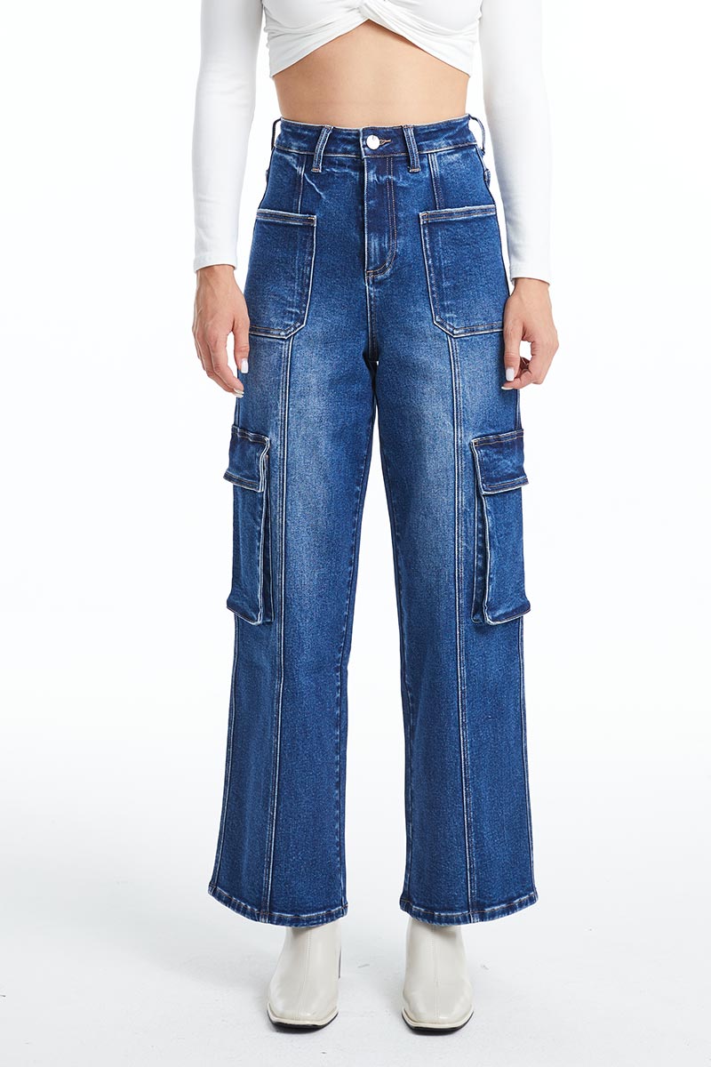 Bayeas High Rise Cargo Straight Wide Leg Jeans bring a contemporary twist to your wardrobe. These slim fit jeans feature a high rise, cargo pockets, and a straight wide leg silhouette for a modern look. They provide shape retention, breathability, and are super comfortable.