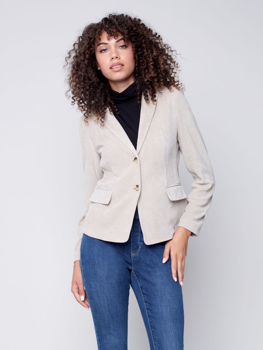 The Charlie B knit corduroy blazer offers the perfect combination of modern style and function. Crafted with a textured corduroy material, this blazer features two patch pockets and a buttoned-front for a timeless silhouette. The lightweight design and comfortable fit add versatility for any occasion.