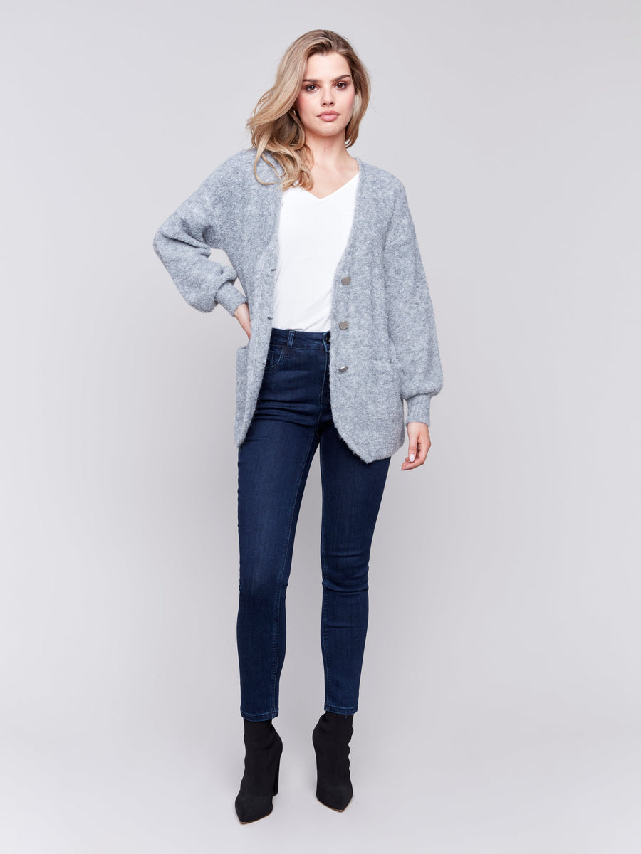 Snuggle up in style with the Charlie B Long Sleeve Boucle Sweater Cardigan. Its cozy boucle fabric will keep you warm while looking effortlessly chic. Perfect for layering, this cardigan will be your go-to piece for any outfit. Cheers to staying cozy and stylish!