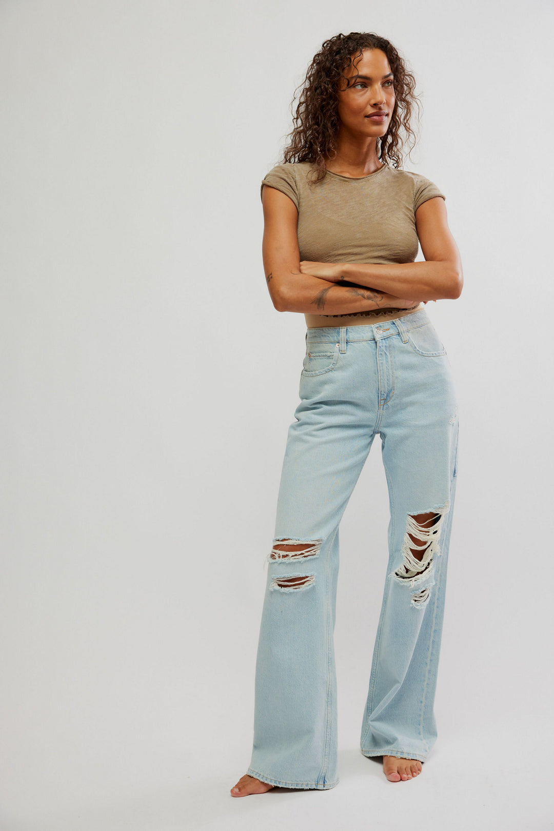 Introducing the Free People Tinsley baggy high rise jeans, perfect for those who crave effortless style. These jeans feature a comfortable high rise fit, versatile baggy silhouette, and are made from high-quality materials for a lasting design. Elevate your wardrobe with these must-have jeans.